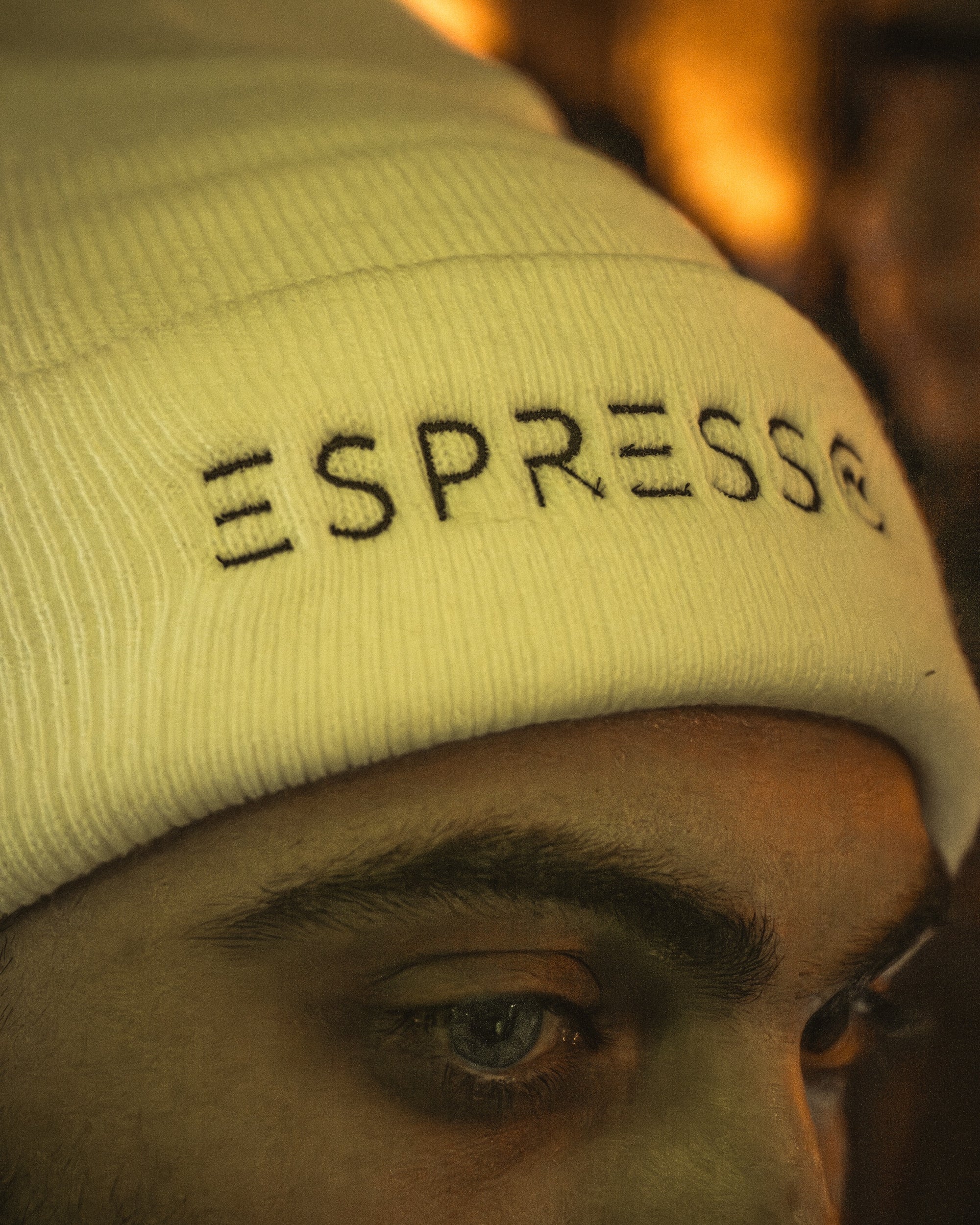 An everyday beanie finished with the espresso.fm logo.